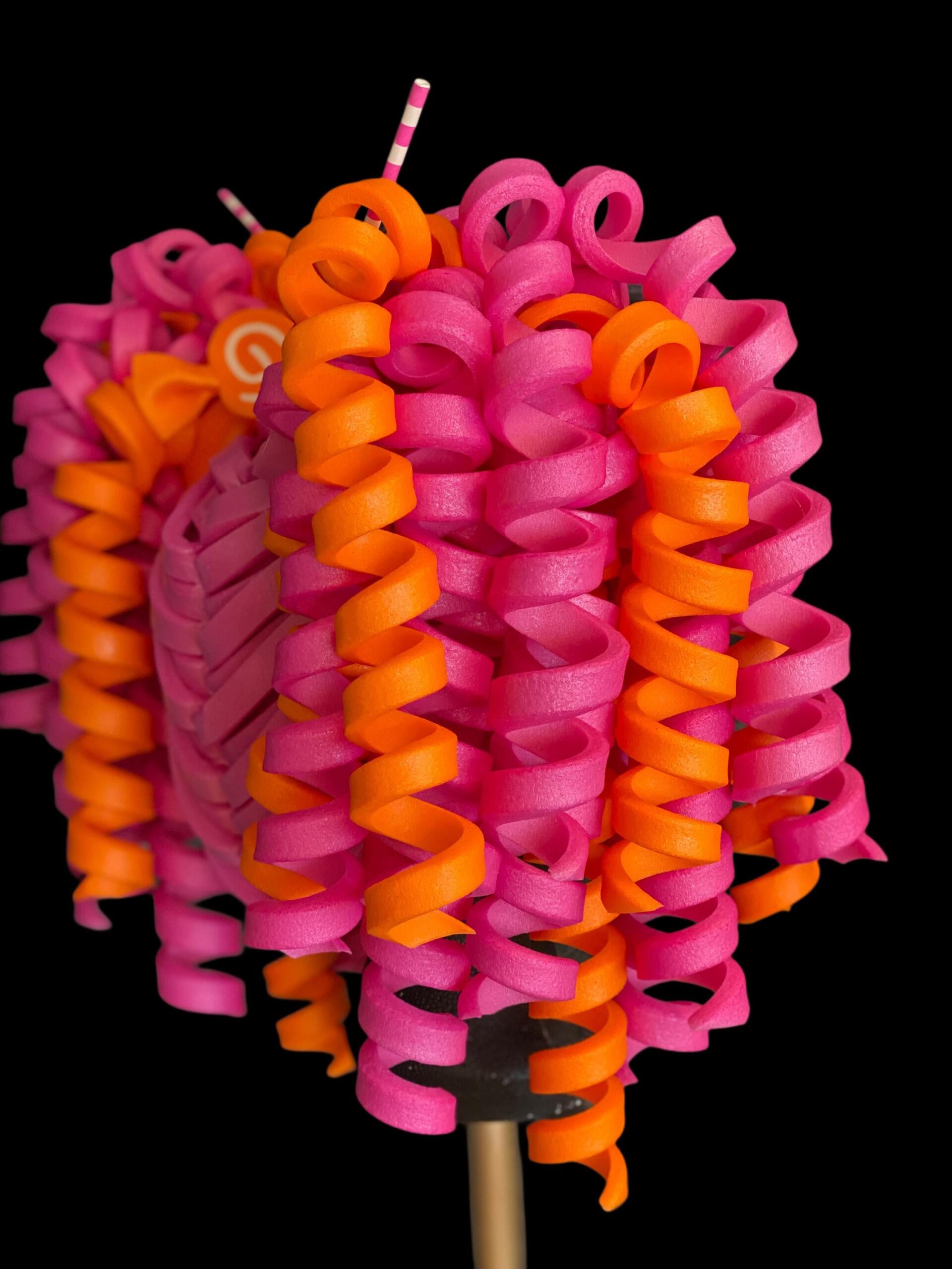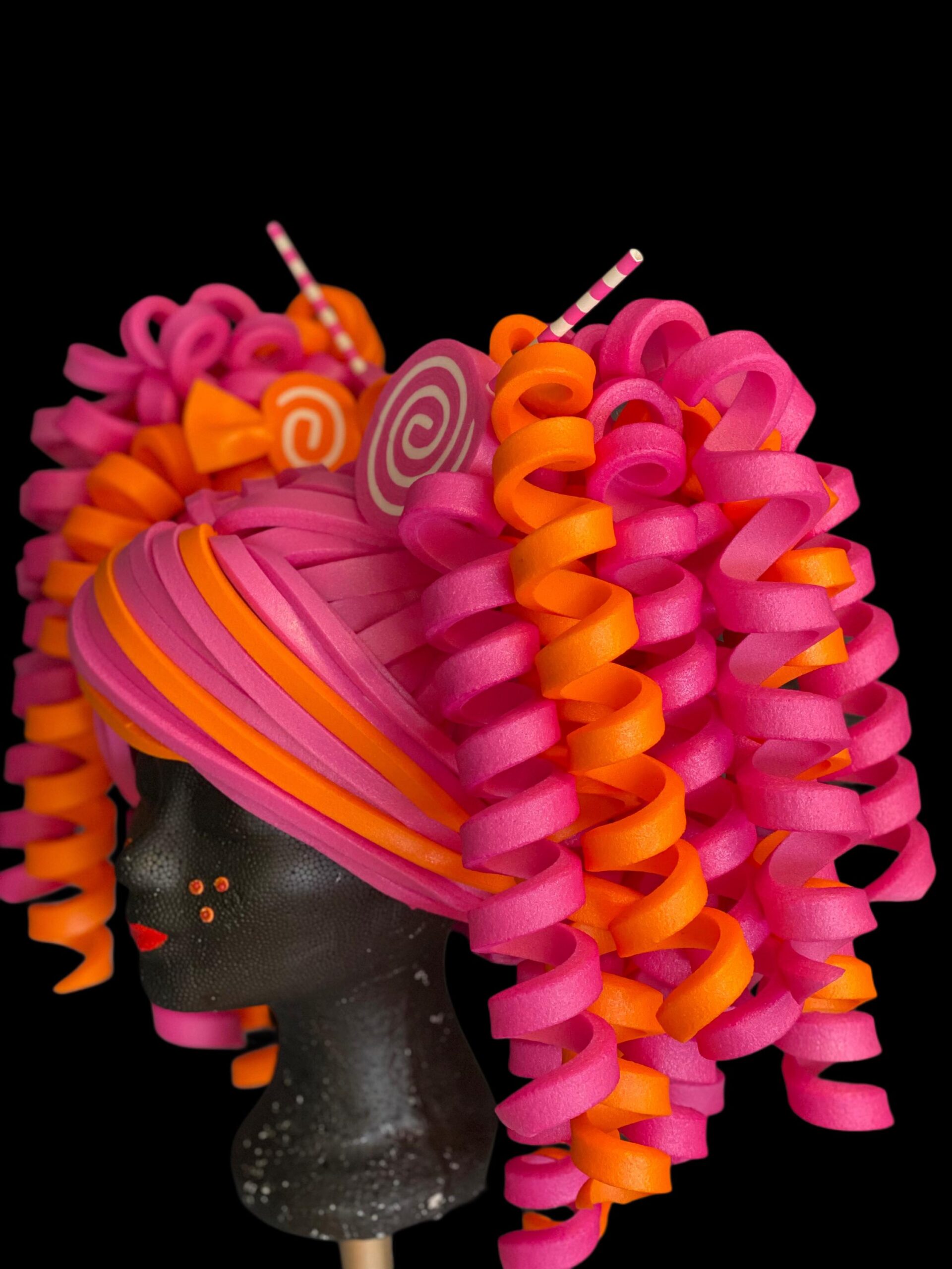 Be the first to review “Schuimpruik / foampruik 2-staarten rose/oranje met snoep”